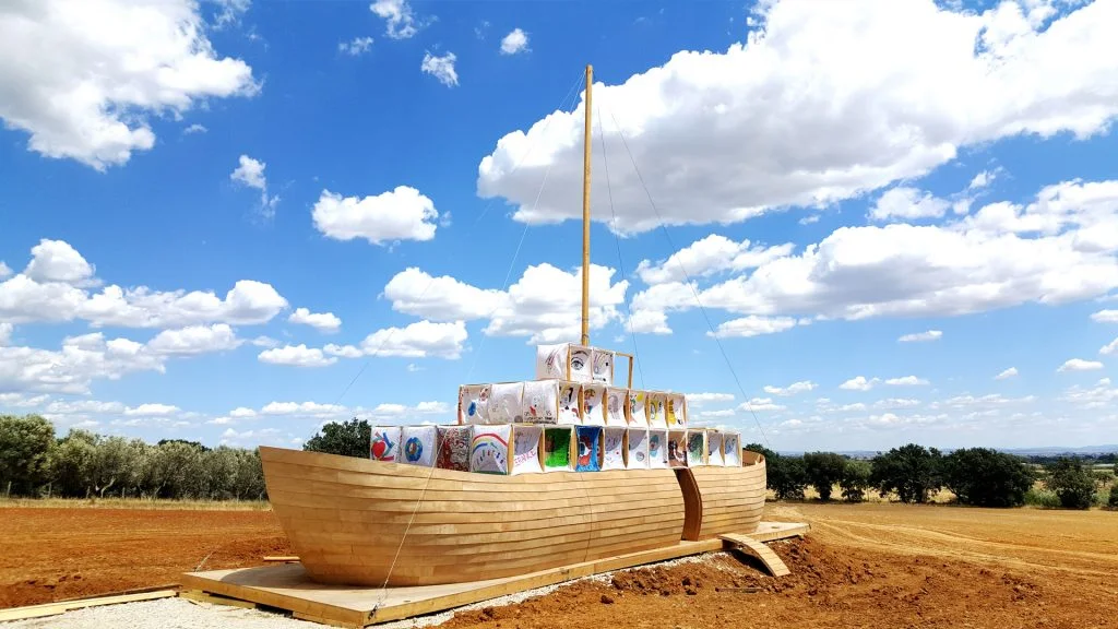 The twenty-foot-long wooden boat, whose sails were made up of paintings by children of different ages, cultures, ethnicities and geographic origin, on the theme of tolerance, hope and dialogue between cultures arrived in Capalbio in 2017.